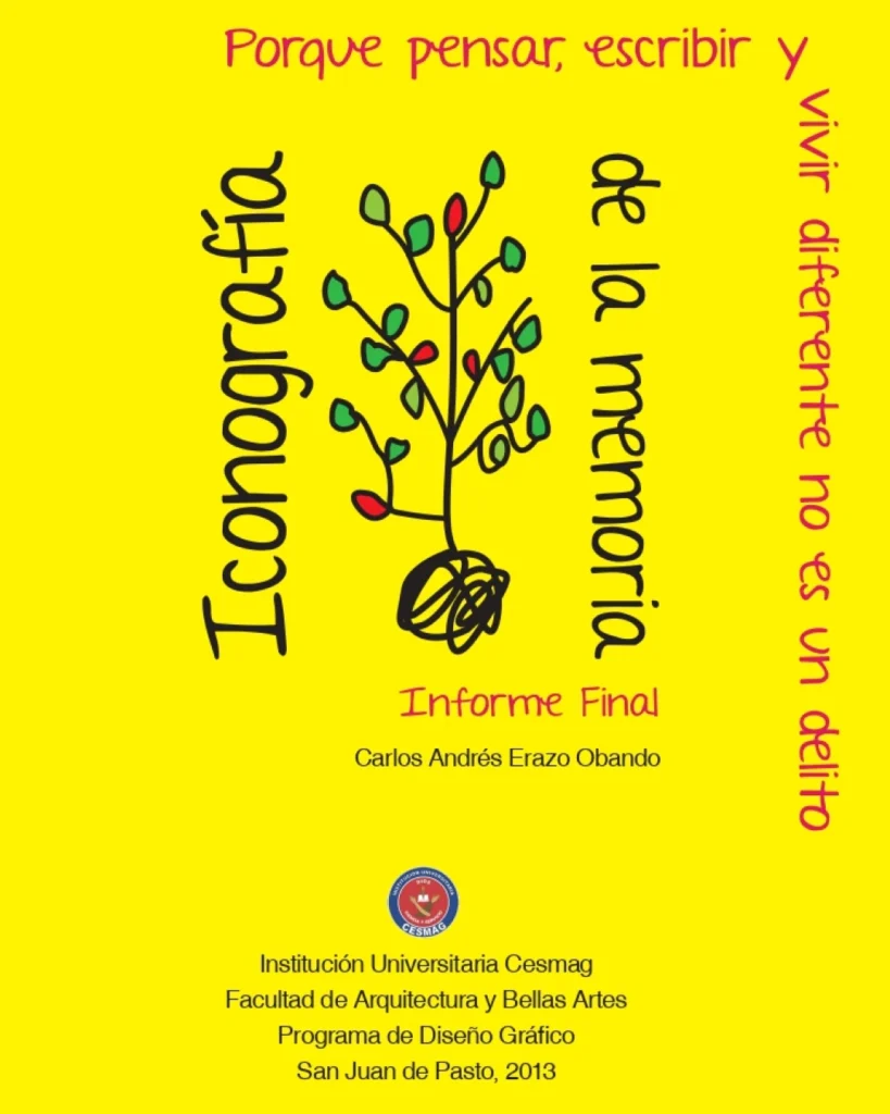 Iconografía de la Memoria es un proyecto que pretende reivindicar la estética y la poética de las expresiones artísticas de personas víctimas del conflicto social y armado en Nariño. Esta propuesta gráfica parte de los textos, trazos y testimonios de un grupo de mujeres como elementos básicos para identificar y analizar aspectos simbólicos que hacen parte de las experiencias, vivencias y recorridos desarrollados en su contexto geográfico, social, económico, político y cultural. La creación de una iconografía responde a la necesidad de hacer visible su situación así como propiciar una reflexión acerca del respeto y la restitución de sus derechos, y las garantías de no repetición de los hechos de victimización que las afectaron.