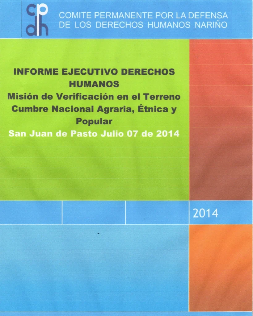 El presente informe presenta las violaciones a los derechos humanos que fueron víctimas personas de diferentes sectores y municipios del departamento de Nariño, en el marco del paro agrario entre los años 2013 y 2014.